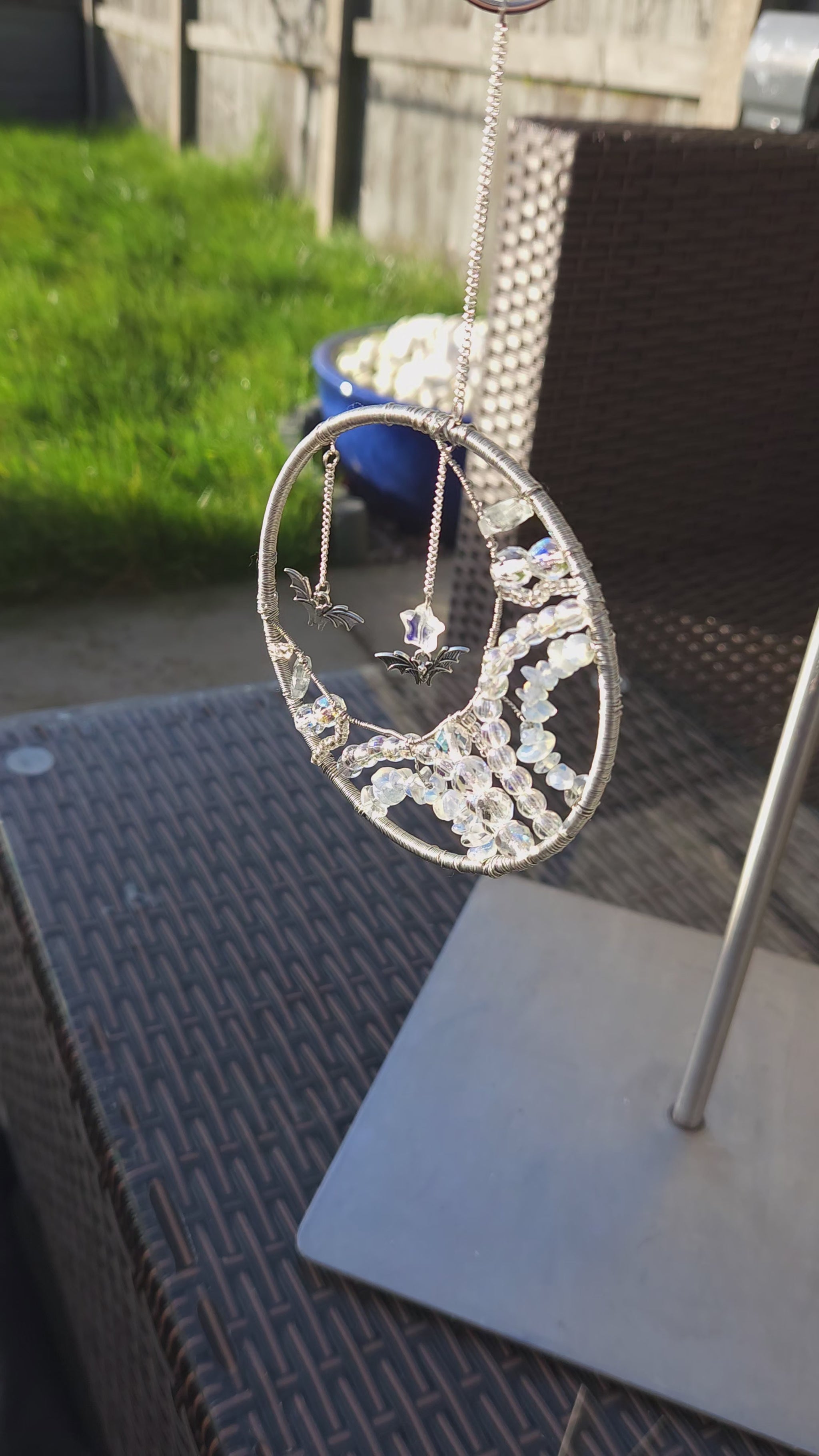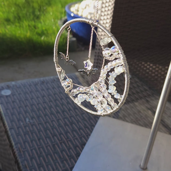 10cm Moon Suncatcher with iridescent acrylic beads with bat charms.